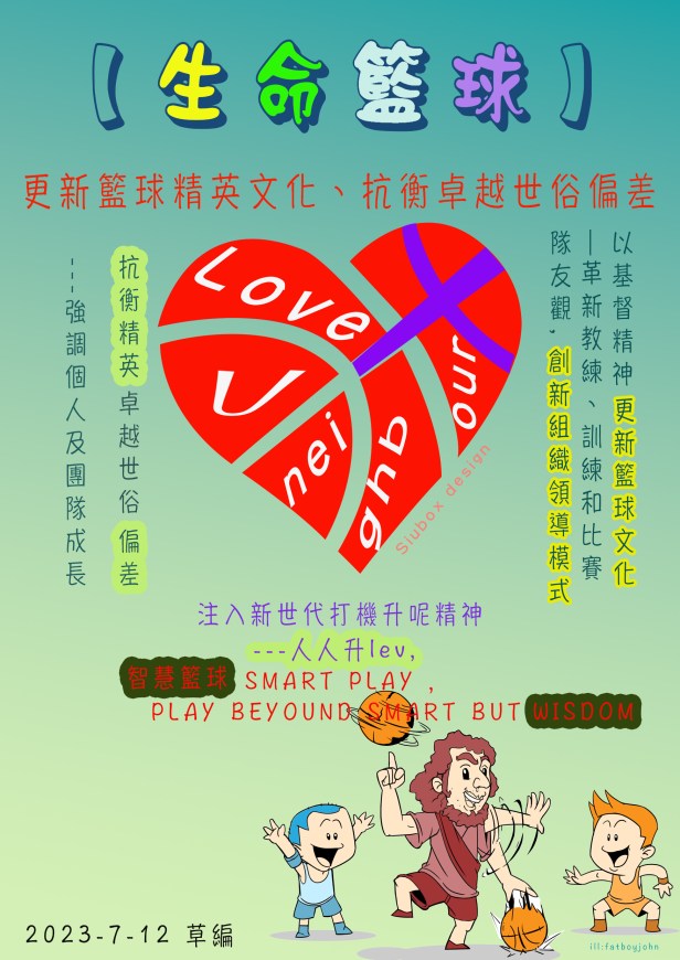 2023九月在興學證基,籃體派出幾位資深同工跟我一起教了四課[跟耶穌學籃球]先導課程,我瞓身編製到了兩本共100頁手冊(配以彩圖,奠立生命籃球的基本階模,大家可到雲端免費下載,大部文章也放了在這網上