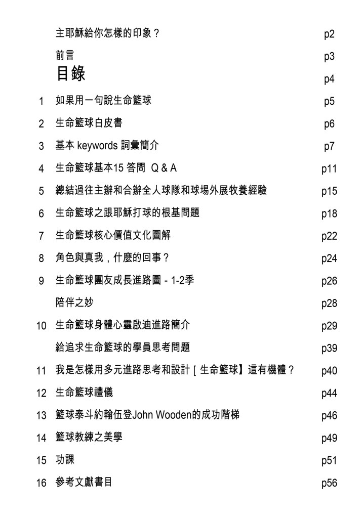 我的生命籃球白皮書,鼓勵大家同工義工合力硏發