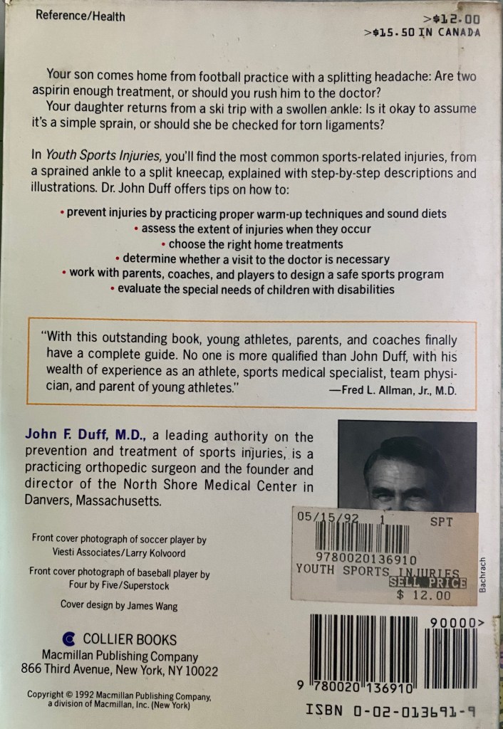 In Youth Sports Injuries, you’ll find the most common sports-related injuries, from a sprained ankle to a split kneecap, explained with step-by-step descriptions and illustrations. Dr. John Duff offers tips on how to: