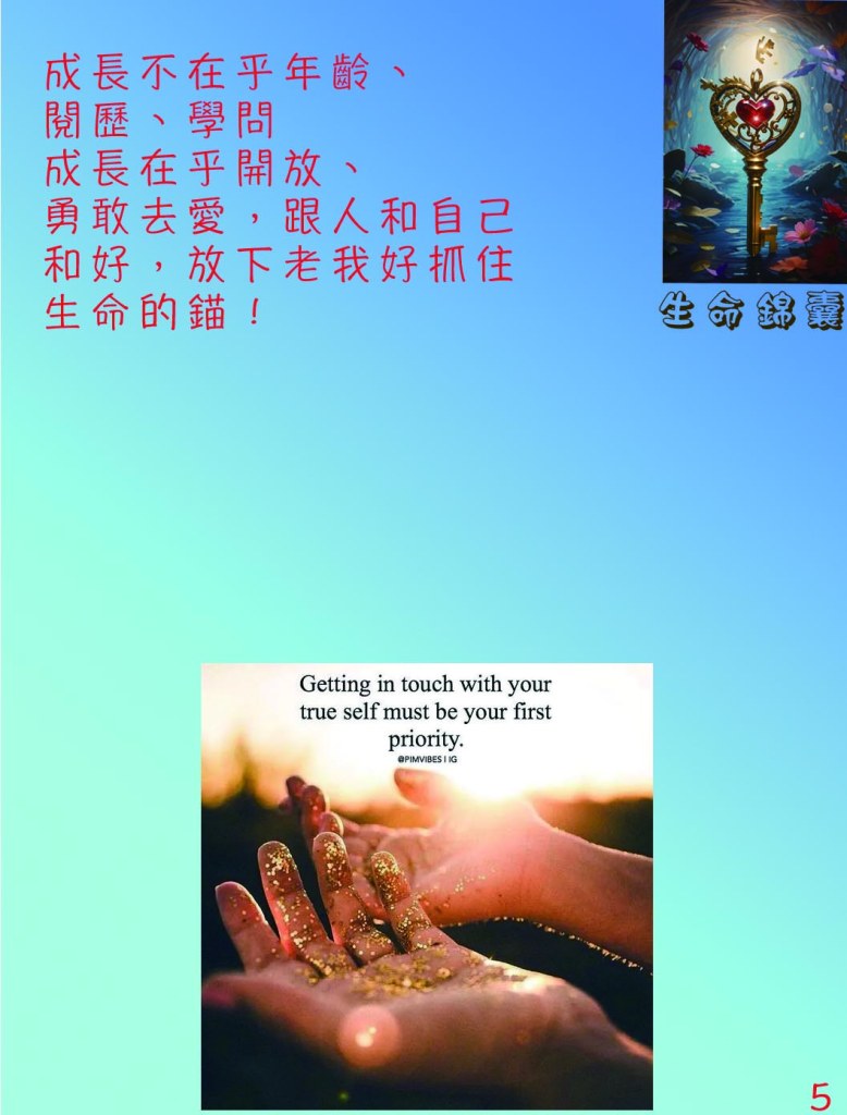 10 善用生命錦囊或你自創或合適的語句,聖經金句,宜選擇合適通俗易明的現代版本或用自己的說話改編下。