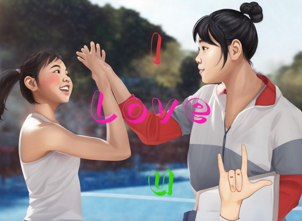 大塊頭,健碩,黑碩,沈默的啞姑娘,現讀體育專科,在一聾啞女子隊做義工助教。