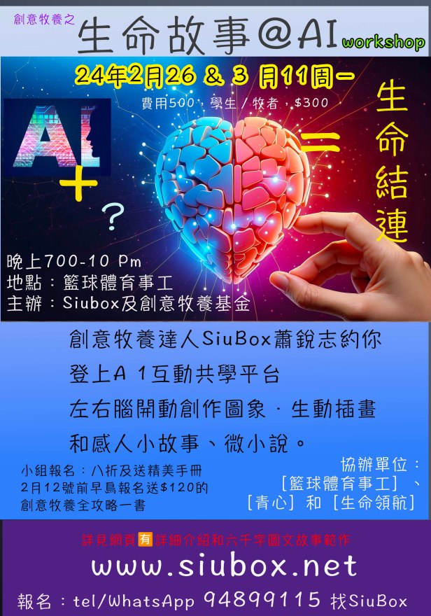Siubox多年身體力行倡導多元啟導的創意牧養,今趟登場上A ¡平台,跟你分享以文字,語音和影像跟A l新世代溝通、互動,啟發牧養之道。