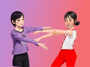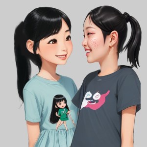 小美跟小芬互瞅對方一下後、各自低下頭來.