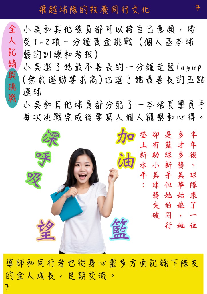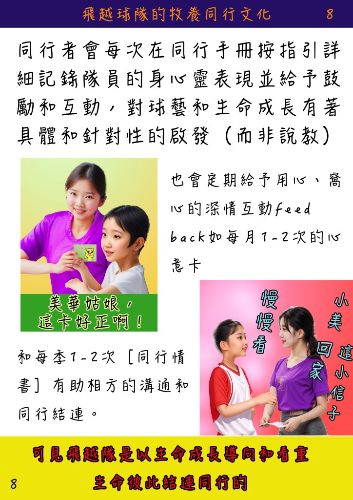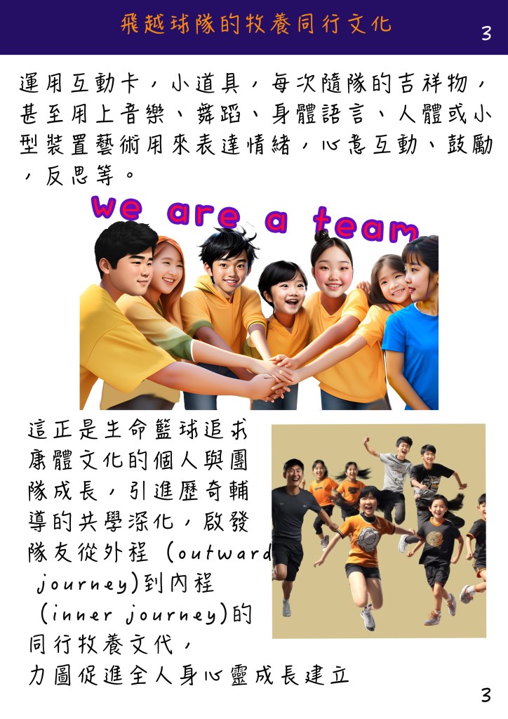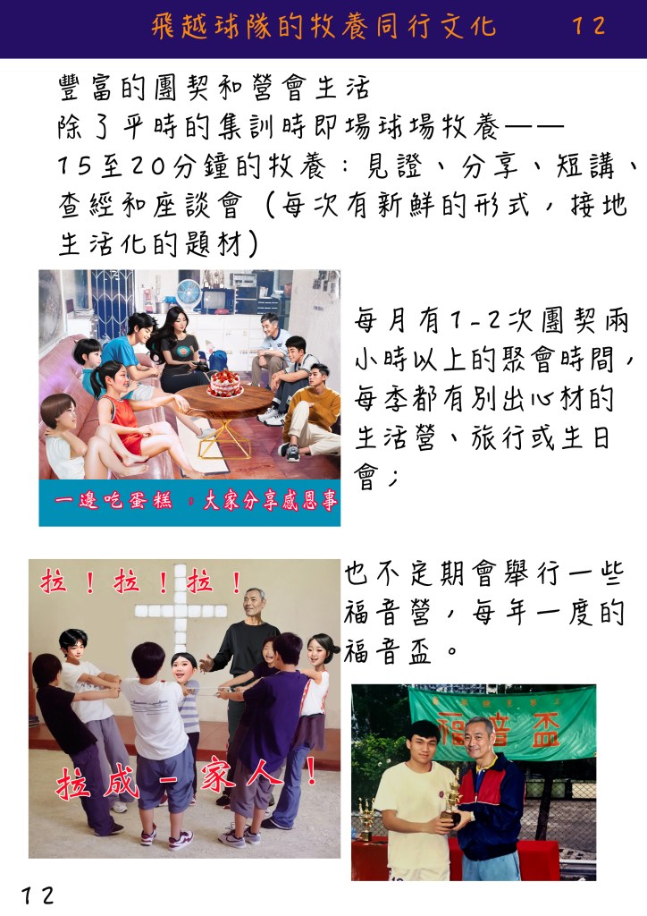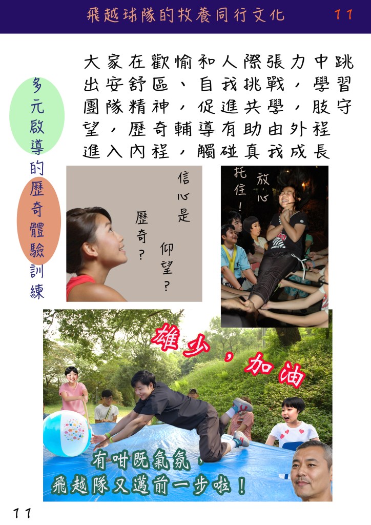 注入歷奇輔導、多元啟導、以人為本的牧養同行,其中多手段多層次的牧養文化。